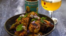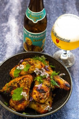 Combinamos sabores asiáticos con cítricos y la frescura de la cerveza St Bernardus Extra 4 como ingrediente en este snack. Esta misma frescura también compensa agradablemente el picante de las alitas de pollo. También es un plato perfecto para abrir una botella de nuestra St Bernardus Extra 4 como cerveza para el maridaje.